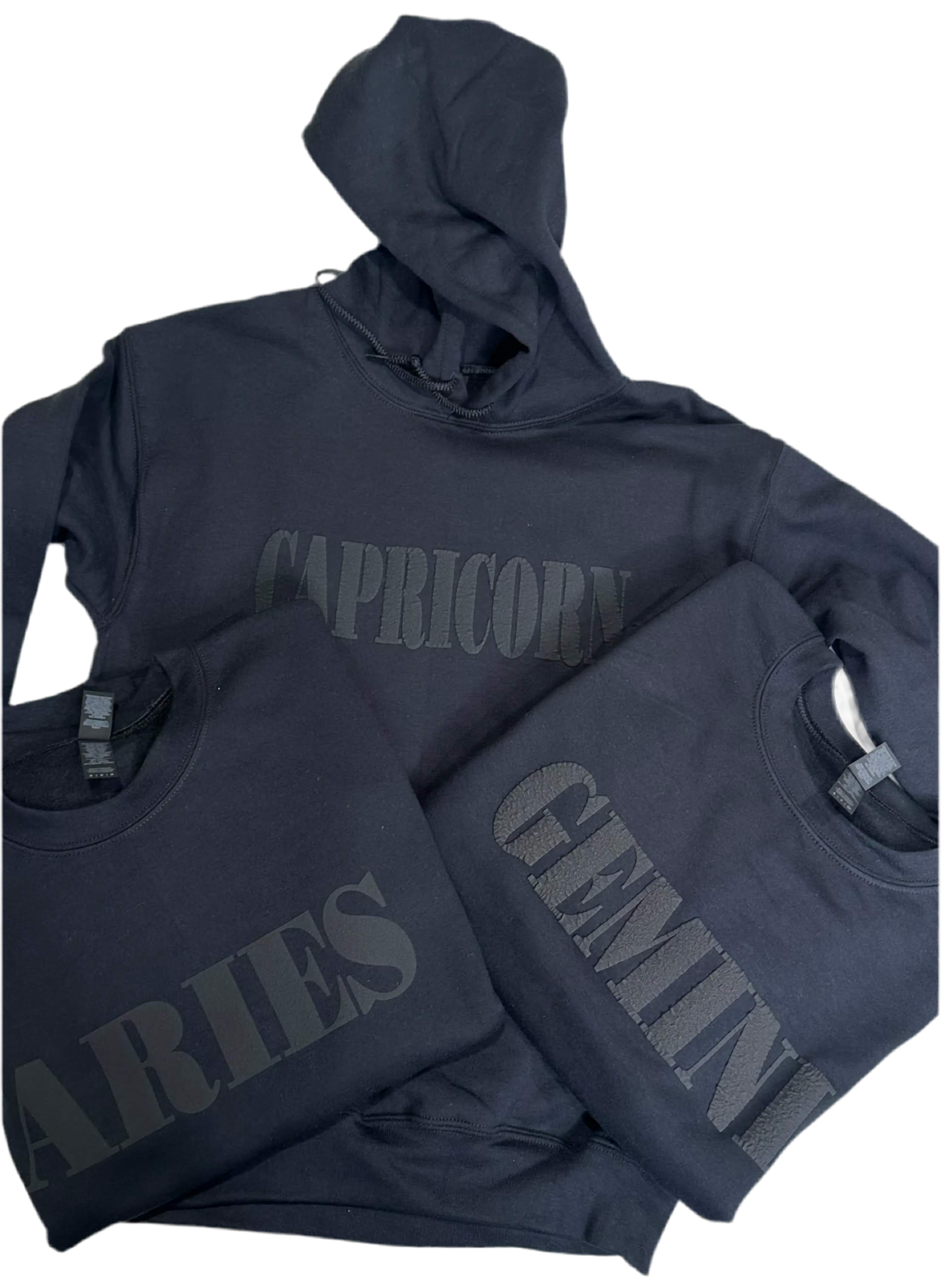 Zodiac Unisex Sweatshirt & Hoodie – Black on Black Puff Print, Modern Astrology Design