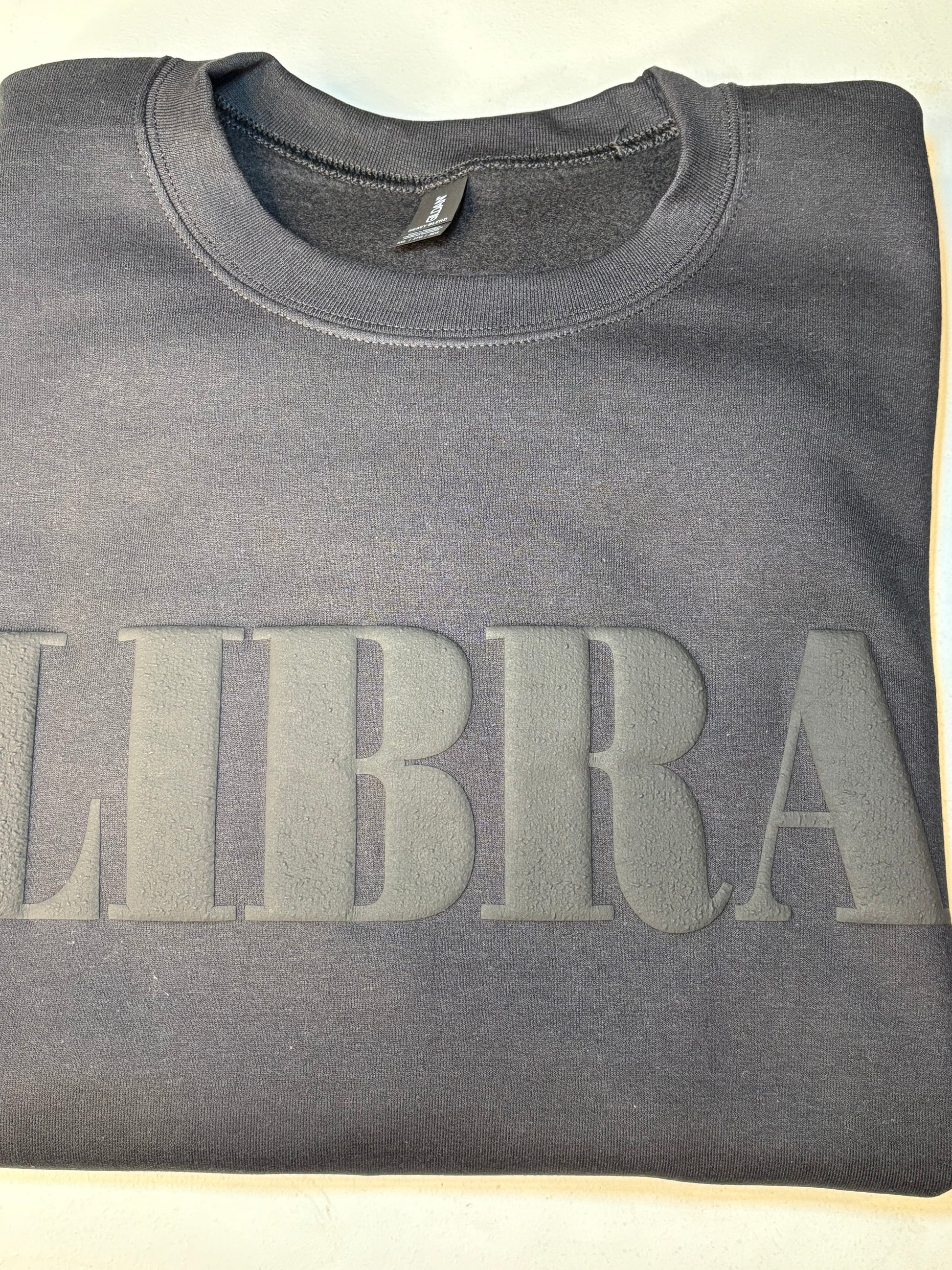 Zodiac Unisex Sweatshirt & Hoodie – Black on Black Puff Print, Modern Astrology Design